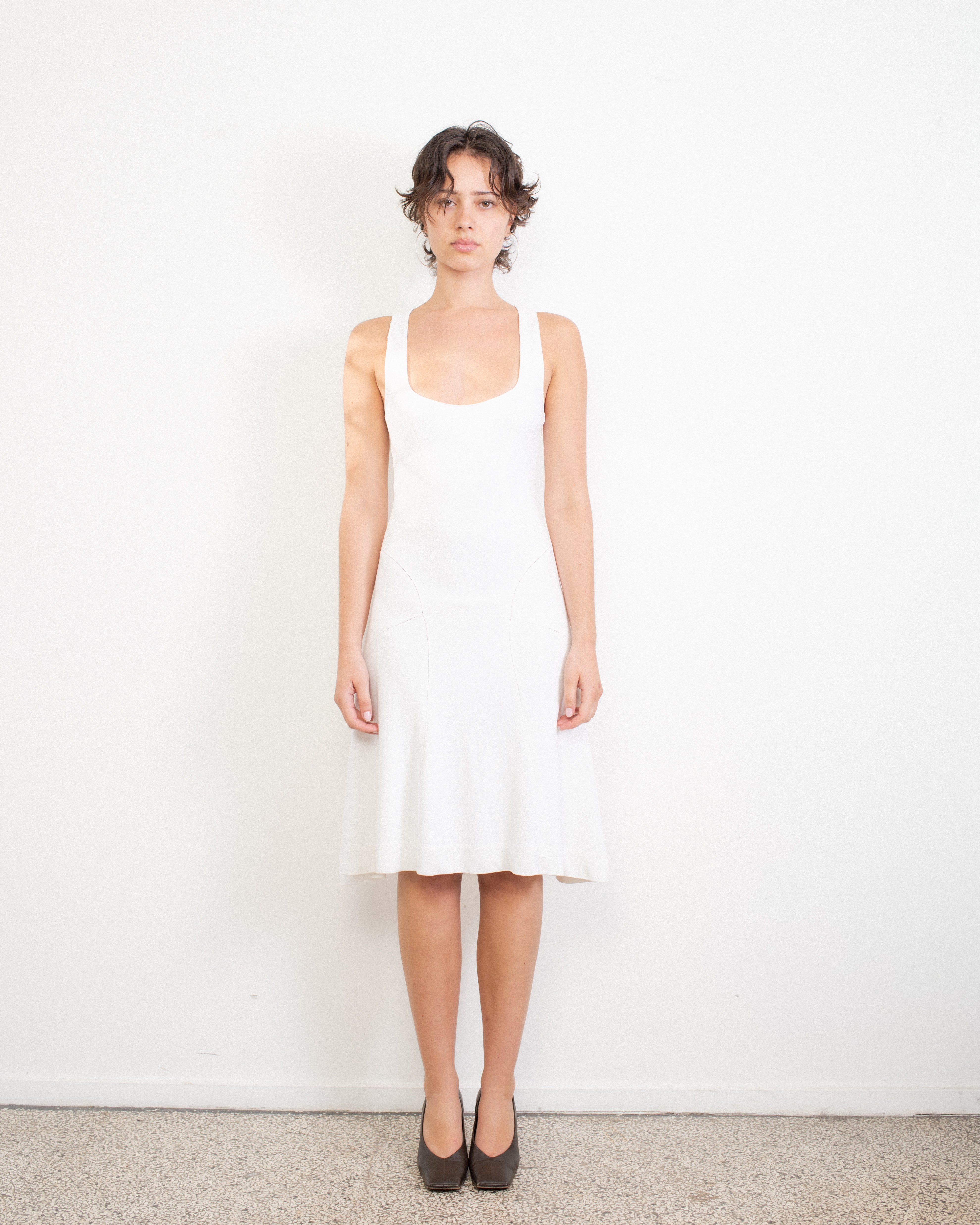 00s White Sculpted Jersey Dress